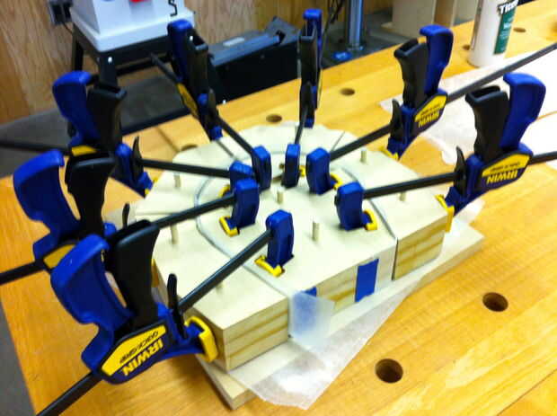La diadema es bastante de un proyecto en sí mismo decidió hacer otro Instructable para ella. Realizado mediante la creación de una laminación de madera doblada con CAD, una fresadora CNC y un cortador láser. Laminación de madera CAD doblado paramétrica diadema