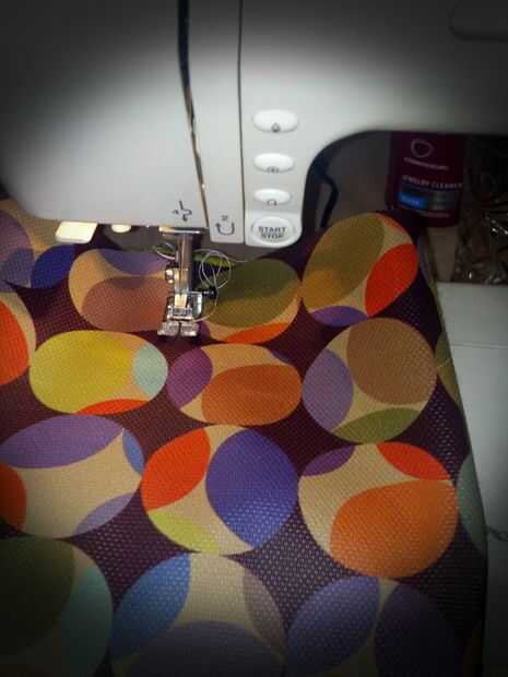 Juntar los lados opuestos de ambas telas y coser justo en la parte superior. Tapa del lado de vinilo sobre frente a usted y 2 pulgadas de la costura donde donde conectan las telas, coser en ambas telas otra vez. Se colgará en la rejilla a través de esta abertura. Mostré en este paso lo debe buscar. Tome un lado de la parrilla aparte y deslice lo que nosotros sólo cosido sobre ella.