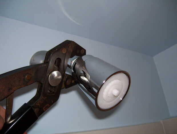 Al final de la regadera es un collar que puede ser atornillado sin quitarla. Utilice su llave para desenroscar. P.S - tenga cuidado de no rayar la cabeza de ducha.
