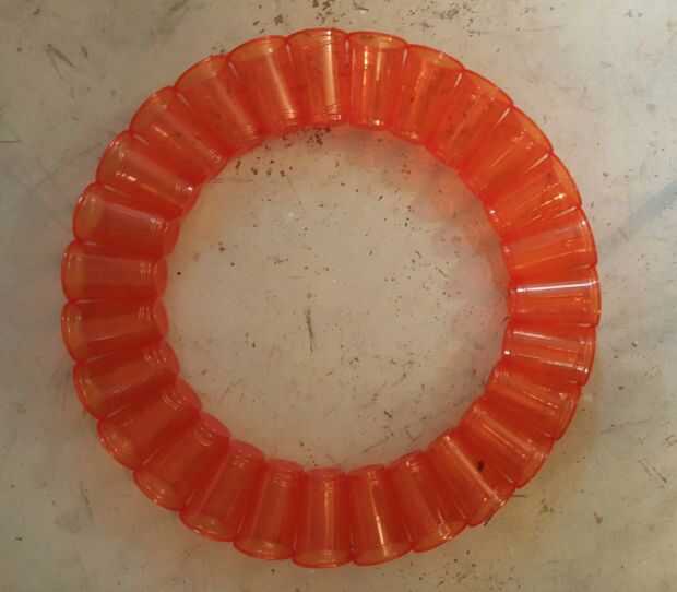 • Construir un anillo de tazas para hacer un círculo perfecto. Para estas 10 oz tazas, tarda 27 tazas para hacer el anillo 1.