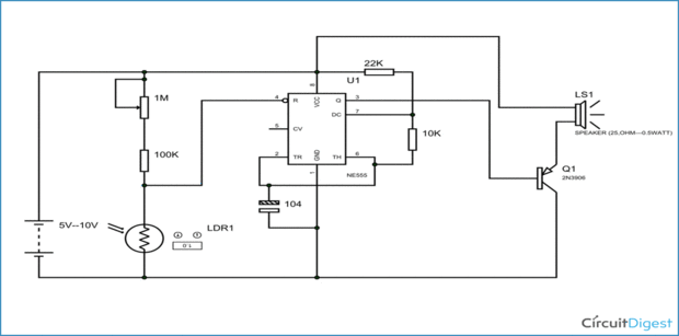 Después de recibir todo conectado tal como muestra en la hoja. Utilice una fuente de energía que tendrá el voltaje cercano al que elijas para el transformador de usted (si usted no puede encontrar un 9v 200ma) para probar el circuito. Encontré la 9v 200ma una mentira alrededor de una vieja bomba de colchón roto. La razón que usted quiere hacer esto es porque si usted nos 6v para probar el circuito y todo va perfectamente sin nada corriendo para caliente, la queme. Corres el riesgo de sobre calentar los chips cuando se pone en una fuente de energía más alta tales como el transformador. Mientras que está probando el circuito sienta las fichas para asegurarse de que no te caliente. Si eliminas la fuente de energía inmediatamente y no queme las fichas buscando mayor resistencia en el circuito de la presa. Si todo funciona como previsto podemos construir el circuito Astable que se enciende cuando las luces se apagan. El diagrama estará en el desprecio de fotos las resistencias y capacitancias y uso los que tengo en la lista de materiales y sólo conectar el pin 3 de la Astable al pin 2 del otro Temporizador 555 (monoestable). prueba de cómo encender y apagar la luz y ajustar su sensibilidad mediante la adición de más o menos resistencia en paralelo con el resistor de la foto.