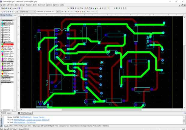 Decidí hacer mi propio circuito porque quería que se vea limpio a pesar de que la Junta resultó para ser muy desordenado y necesito practicar mis habilidades de soldaduras un poco. Cualquier manera, pensé que sería mostrar lo que hice porque tomó el más largo de los pasos para realizar este proyecto. Usted puede hacer un tablero utilizando un estándar pin pcb para soldar todo en. Si desea más detalles sobre los métodos o el código para hacer tu propia placa de circuito sólo mensaje me.