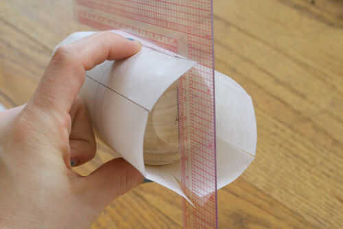 -Medir una pieza de papel más alto que el huevo y tan amplia como el huevo. Dividir el papel en sextos y marque con líneas de la altura del papel (y huevos).