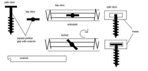 [[br]] el T-tornillo tiene una cabeza en forma de T, con los lados planos. Se puede girar con la llave especial. Muy a menudo la aplicación para que t-tornillos se utilizan es fijación oculta, donde la cabeza es insertada entonces cruzada en un canal o ranura y sujetado con una tuerca. En una aplicación común T-tornillos son la manera más segura de colgar un cuadro. Los soportes se atornillan en la parte posterior del marco y el tornillo se inserta en la pared, en posiciones exactamente medidos. El marco está equipado entonces sobre él, y la cabeza se volvió a enganchar el canal del marco con una llave de llave de seguridad. [[br]]