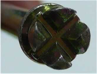 Ironsmiter compañero colaborador Instructable más explica: el jefe de Lotus en coche es básicamente un estándar Tornillo de ranura en Cruz, como se ve las ranuras son producidos por un "mucho más barato proceso". Básicamente, la cabeza del tornillo está dividida por una herramienta de tipo cincel.