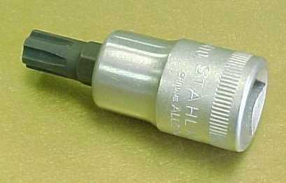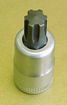 Poco A Polydrive® tiene 6 dientes en el espaciamiento igual y con puntas planas de los dientes. Tamaño se determina por el diámetro del OD en los puntos estrella. Funcionalmente, es similar a la unidad de Torx® y Bristol Spline, que son sistemas que utilizan los controladores internos toma de bit junto con pernos especialmente diseñados, tornillos y otros sujetadores. Su principal ventaja sobre mayores estándares de controlador de sujetador, como la cabeza común del Phillips® y su hermano Pozidriv®, es que resiste camout y por lo tanto se utiliza en aplicaciones de par mayor como frenos y ejes de transmisión. [[br]]