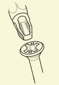 Todas las ventajas de la Phillips Square-Driv. ACR es reducido camout, confiable adhesivo y alto par. Las cabezas de los tornillos están marcadas con señales doble como se muestra.