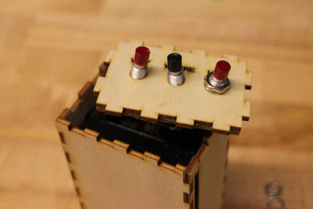 La electrónica debe deslizarse en la caja y el interruptor se monta en el agujero en el lado. Montar los interruptores en la tapa y la tapa debe tener una fuerza de ajuste en el cuerpo de la caja. Era capaz de conseguir un cinturón de lazo por los agujeros en el lado pero fue un ajuste apretado.