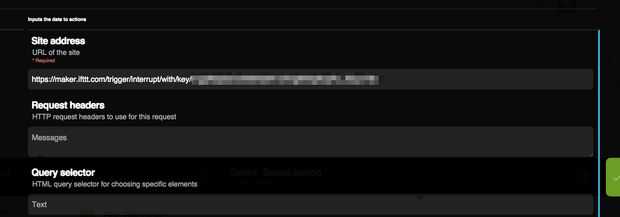 Paso 7: Pasado el enlace de la fábrica de IFTTT canal en la aplicación de Webhook.