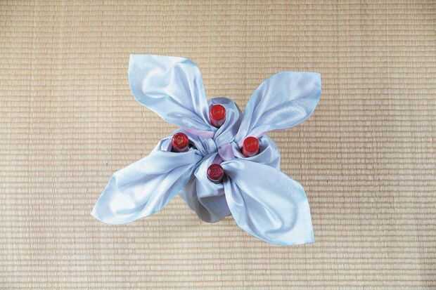 Cuánto se adapta a todo tipo de formas... esta vez es acerca de una sola botella con 2 diferentes formas de embalaje.Paso 1: Método 1Paso 2: Coloque el biberón en el centro del cuánto.Paso 3: Tomar dos esquinas opuestas, levantando encima de firmemen
