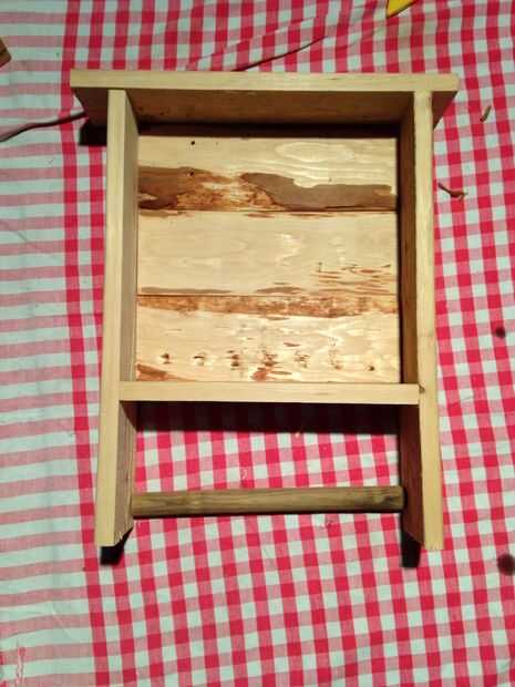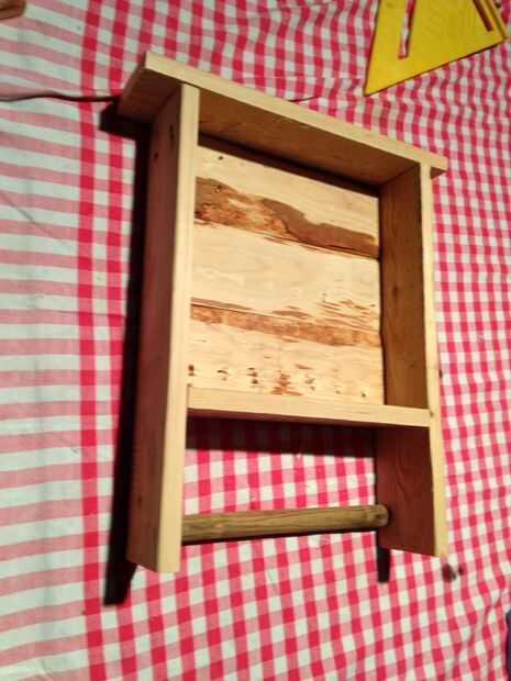 Encontró un viejo palo de escoba y corte un trozo como un sostenedor de la toalla.