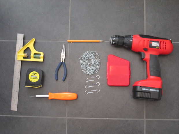 2. Cadena de luz 4 veces tan largos como el ancho de su vanidad (el cable o podría funcionar, pero no podía conseguir bastante tenso de cuerda)
