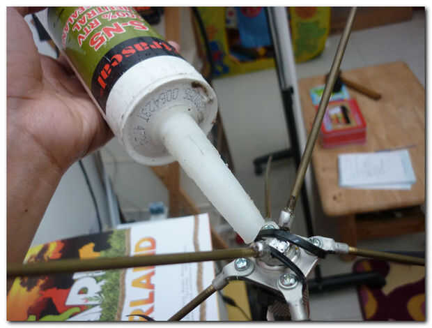 -Tirantes con amarres de cable negro y el punto de soldado con sellador de silicona para impermeabilizar la cubierta. -Transmitir feliz! -73 de 9W2WDX Asni (QTH: Bangi Bandar Baru, Malasia) -Ver mis otras actividades en think2bgood.blogspot.com y kakipedal.blogspot.com