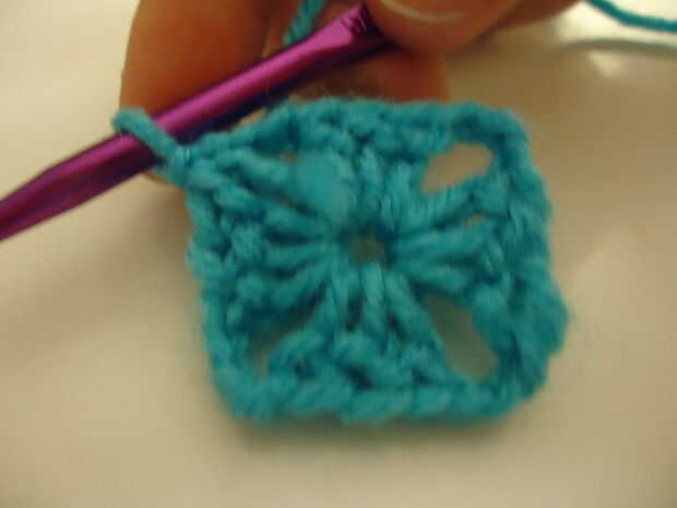 Inserte el gancho en la parte superior de la cadena que comenzamos con al principio de la doble crochet sección y deslizamiento puntada aquí (envolver y tirar a través de ambos lazos). Esto debe hacer continua y terminar la cuarta esquina. Ya que hayas terminado de una rotación completa de la labor de ganchillo, usted llamar a esto una ronda en lugar de una fila, como tenemos previamente. Tan en crochet hablar: apenas termine una ronda.