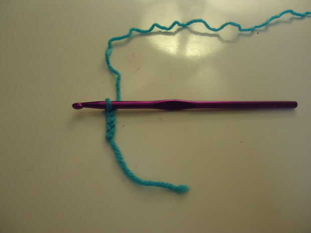 Comenzaremos por encadenar 4 puntadas como en el pasado. (Envuelva hilo y páselo a través de bucle en el gancho)