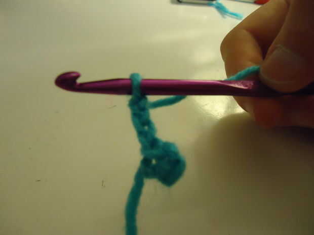 Esta vez la cadena de 3 puntos, saliendo del anillo que acabo de hacer.
