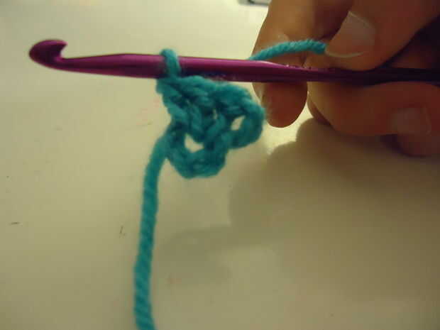 Repetir este proceso dos veces más en el ring, haciendo tres puntadas de ganchillo doble total. Si te estás preguntando qué hacer con la cola partida, yo simplemente mantenerla a lo largo de lado el anillo como ir por lo que se esconde en medio de las puntadas de doble crochet.