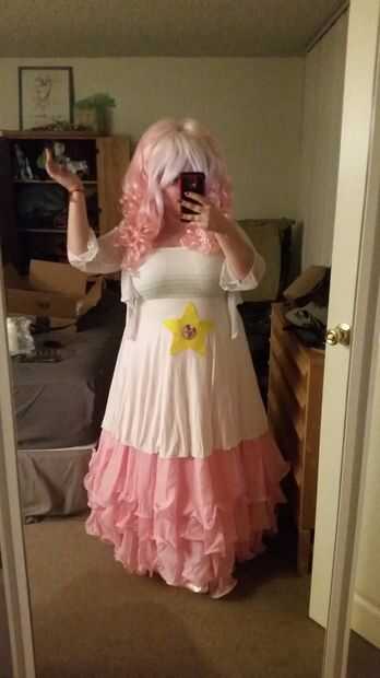 Tengo el pelo super largo, usé el método de Penolopy de montaje todo mi cabello bajo la peluca y era todavía un ajuste de ajuste, pero he conseguido. Afortunadamente, cuarzo rosa tiene el pelo muy grande, por lo que la mayor altura de todo mi pelo real debajo de la peluca no era algo malo. El año próximo definitivamente estoy haciendo algo que no requiere una peluca aunque!