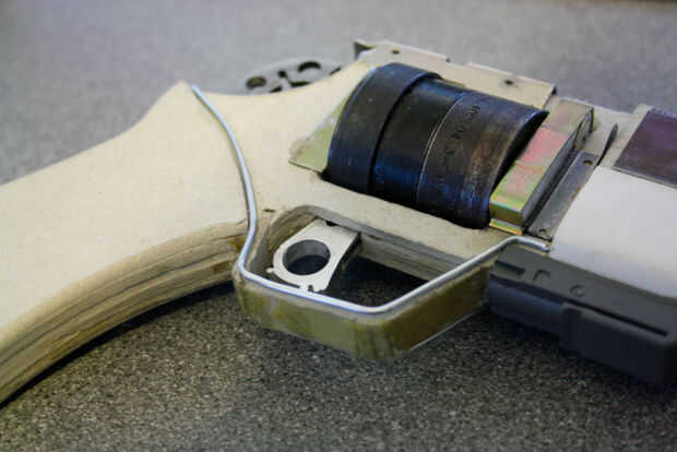 Un paso final con cualquier prop como esta es perforar algunos agujeros pequeños y atornille y pegue algunos tornillos de repuesto para darle la apariencia de ser metal atornillados/atornillados.