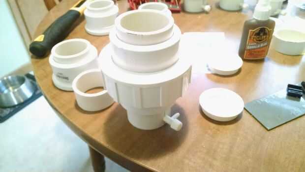 Si usted medido correctamente los tapones de prueba deben venir bastante cerca de la parte inferior de los agujeros perforados sin cubrir para arriba. Después de estas secciones se han secado, insertarlos en la parte roscada (hombre) de la Unión. Se trata de la parte inferior de la mitad de su fluido de las camas. En cada agujero colocar una de las válvulas de control de aire del kit que compraste en Petco. deben quedar ceñidos, pero si hay una pequeña sala escaria el agujero hacia fuera un poco a la vez hasta logra el ajuste perfecto.