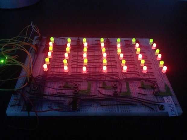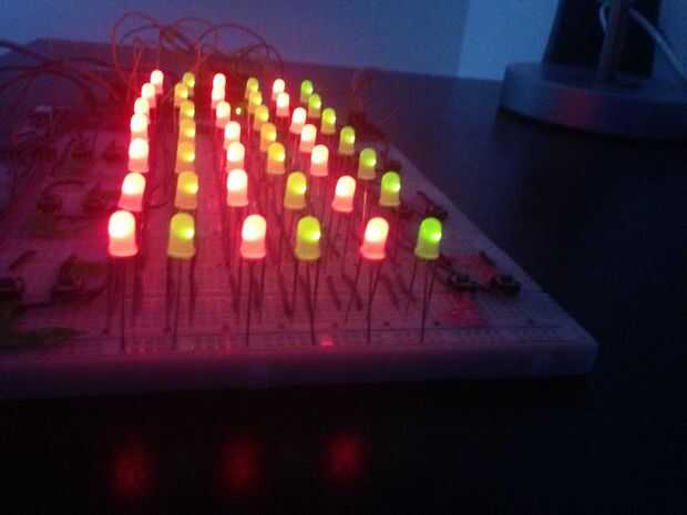 después de hacer una matriz de 8 X 10 mucha gente me preguntó acerca de ampliar la matriz a algo más grande y algunos quisieron escribir cosas a la matriz mediante un PC, así que un día miré un montón de LEDs que tenía sobras de un cubo de LED proyec