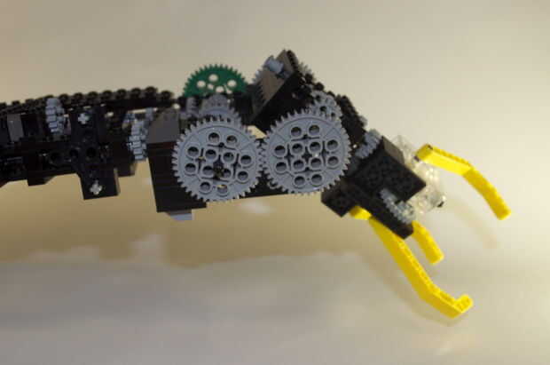 el Robot de cartón es un enorme ordenador controlado Robot brazo con A alcanzar apenas tímido de 6 pies. Tiene dos configuraciones:1. la garra-tres dedos garra que permite recoger animales de peluche y sucios calcetines del suelo sin tener que agach