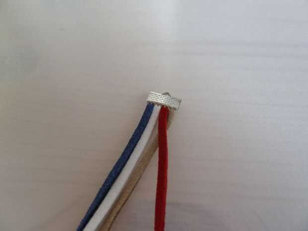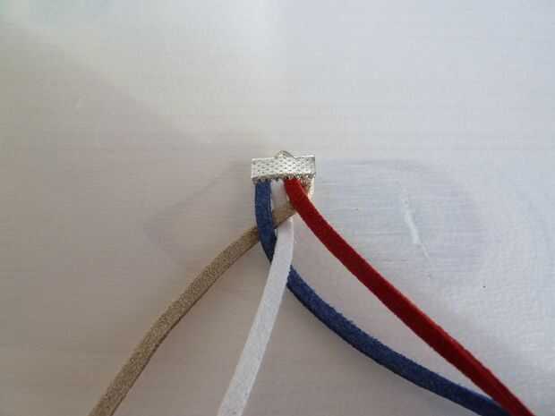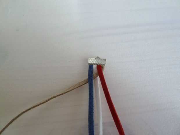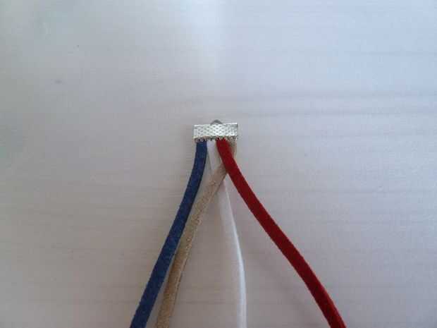 Inicio poniendo el encaje justo debajo de él queda. A continuación, ponerlo sobre el cordón próximo a la izquierda. Ahora es el momento para tomar el cordón izquierdo. Ponerlo sobre el cordón a la derecha y debajo de otro. Repita estos dos pasos hasta que haya terminado su trenza. Tenga en cuenta que no cabe totalmente alrededor de su muñeca, también hay un encierro allí.