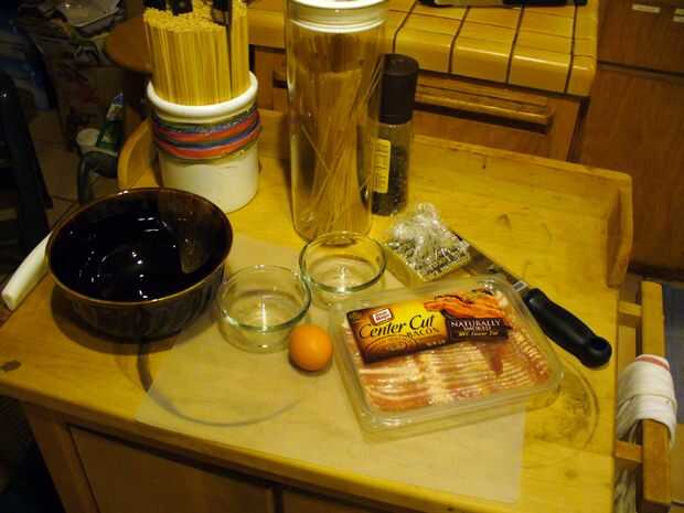 También necesitarás un rallador fino, una olla para cocinar el espagueti, pinzas para la manipulación de los alimentos y una sartén para cocinar el tocino. También necesitarás un par de moldes para separar el huevo antes de tiempo.