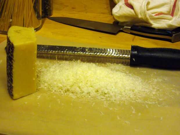 Cuando ralle el queso con un rallador fino, que parece que hay un montón de queso rallado, pero la mayoría del volumen es aire. La textura de un queso duro depilada en pequeñas cintas con el Microplane es increíble. Las virutas se disuelven rápidamente en la lengua en una suave explosión de sabor a queso.