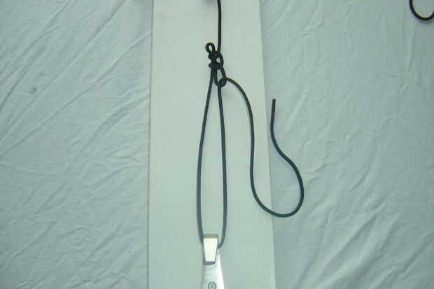 Paso 5. Para utilizar el nudo justo tire hacia abajo la línea de fondo para poner tensión en la línea principal.