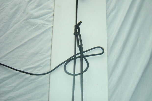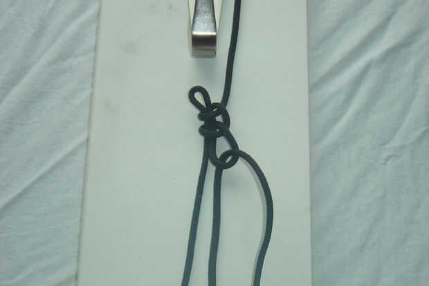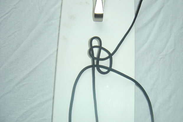 Paso 1. Enrolle la línea en el punto de anclaje. entonces doble sobre la línea final poniendo la parte superior del bucle en la línea principal.