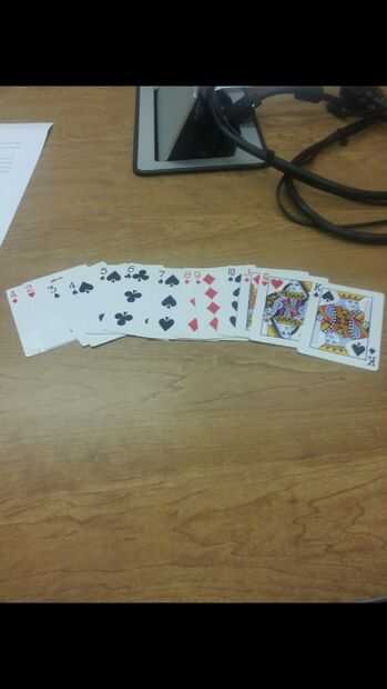 El objetivo de este truco es deletrear el nombre de cada tarjeta como "al azar" Coloque las tarjetas hacia fuera.