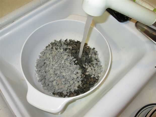 De la roca fue lavado en un colador para deshacerse de cualquier polvo que pudo haber sido una molestia para algunos de los niños que tienen alergias.