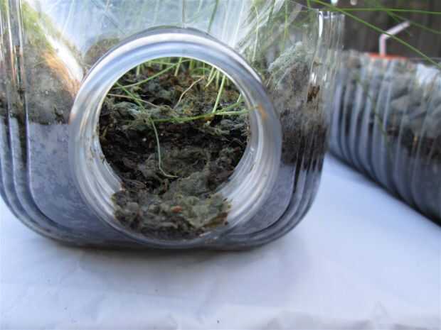 Yo sabía que quería utilizar hierba para uno de los tres contenedores que muestran erosión.