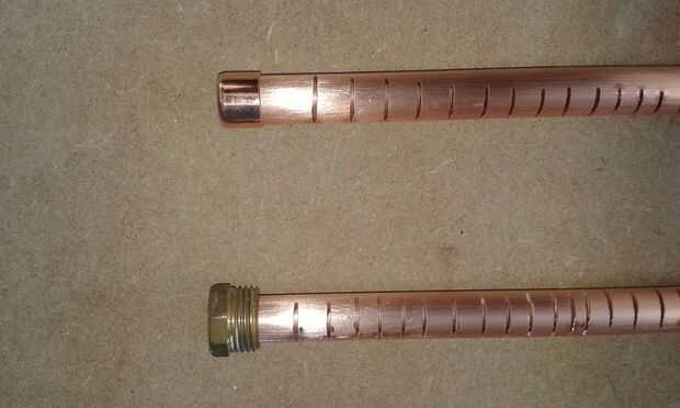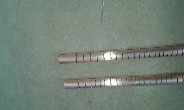 para hacer el mosto pipas de colección necesita cortar ranuras en 2 piezas de tubo de 30cm a intervalos de 1cm y 1cm de profundo con un disco de corte de 1mm o una sierra para metales.