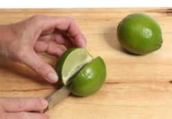 También hay una serie de métodos que existen para cortar esta fruta deliciosa pero sólo una que nunca recomendaría. Se muestra un diagrama arriba y asegurará para siempre una guarnición deliciosa, no sólo estructuralmente como se posa en el borde de su vaso.