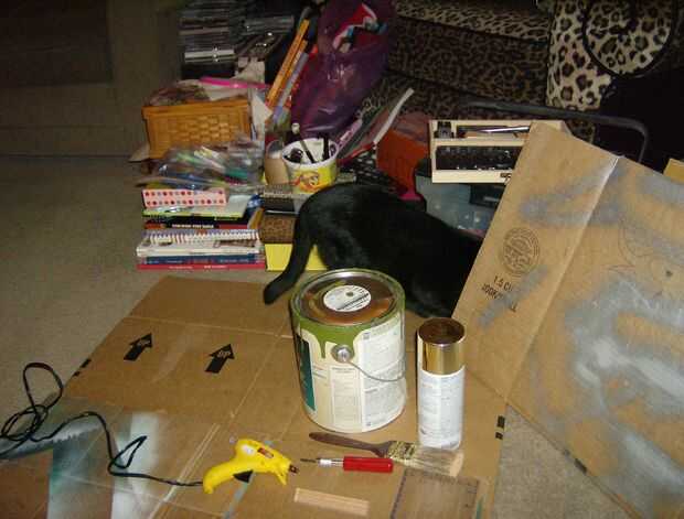 Una superficie sólida que no le importa conseguir pintura, para proteger su piso alquilado, usé... sorpresa! cajas aplanadas.