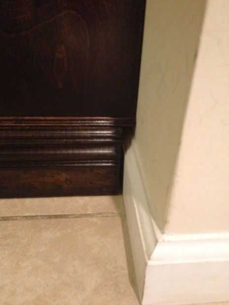 ¿Recuerde que optó por avanzar ligeramente la base? He aquí por qué lo hice en la parte posterior también. Tener la brecha permite la unidad a sentarse al ras contra la pared sin el zócalo existente ajuste para cortar.