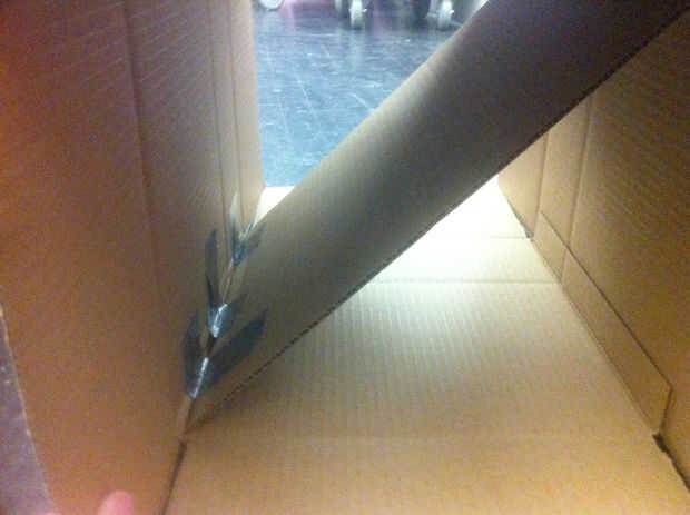 4. Inserte y uno de 17 * 12 pulgadas de cartón dentro de la caja de la cinta.