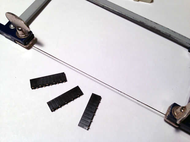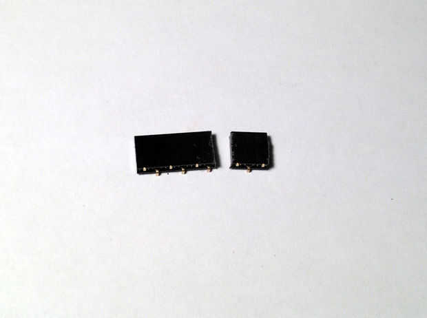 He comprado 10 posiciones cabeceras de Sparkfun (véase lista de materiales) y cortar con Sierra de joyero.