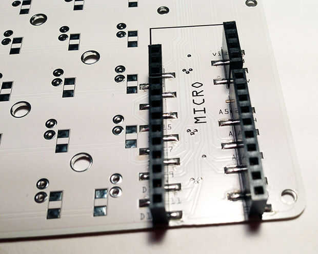 Una vez que se cortan sus cabeceras, y que ha hecho que Alinee correctamente con los pads con "MICRO" en la tarjeta cubecube, estás listo para soldar.