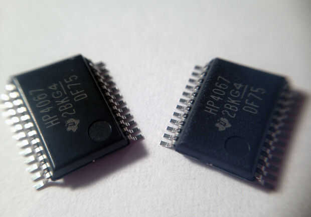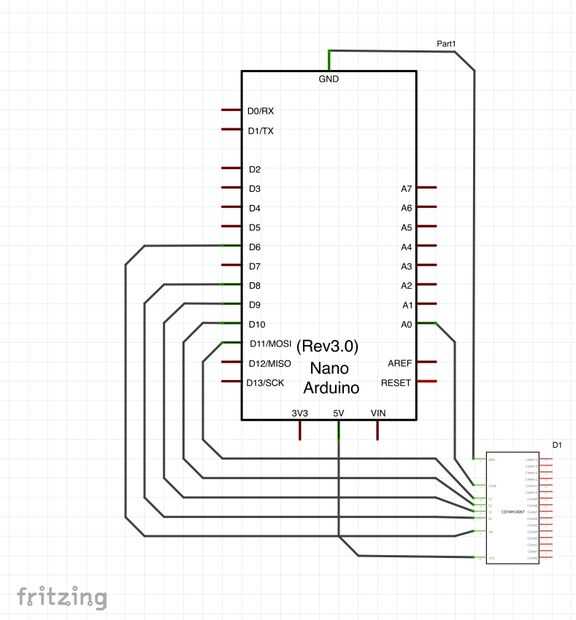 Para romper los pernos de Arduino Nano a 64 entradas analógicas, utilicé cuatro fichas de multiplexor/demultiplexor de montaje en superficie 16 canales (a menudo referidos como "mux" o "demux".)
