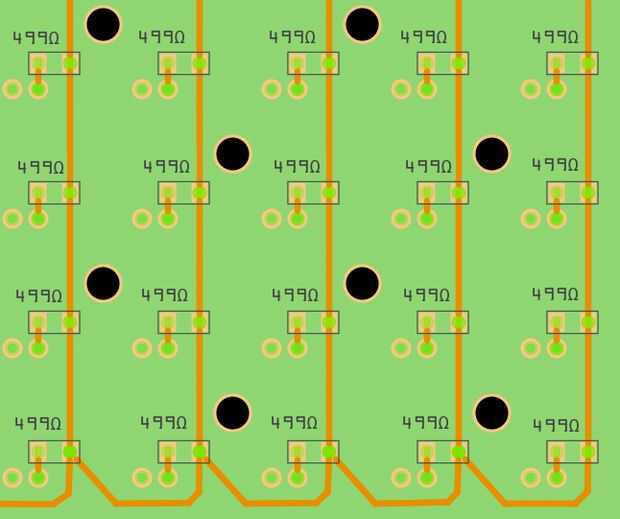Cada punto de la red necesita su propio resistor ohm 499, por lo que ya tienes 64 de éstos a la soldadura! Cuando termines tendrás una soldadura SMD pro.