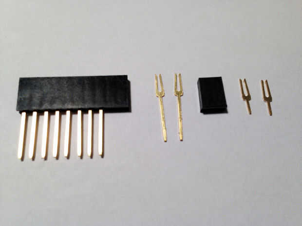 En su lugar compré apilamientos encabezados femeninos 10 posiciones y dos posiciones cabeceras mujer "regulares" (ver lista de materiales). Simplemente quitar las patas de cada usando unas pinzas e intercambiarlos!