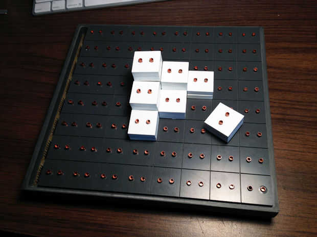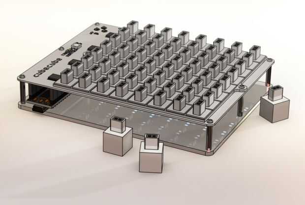El sistema detrás de Cubecube es simple. Sus bloques de construcción cada uno contienen una pequeña resistencia, y como que se apilan en paralelo sobre un divisor de tensión, un cambio en el voltaje puede ser leído por un microcontrolador. Cuatro multiplexores analógicos rompen entradas el Nano en 64 canales discretos. Cada canal, dispuesta en una cuadrícula de 8 x 8, lee un voltaje cambiante determinado por el número de cubos de la pila. El prototipo actual soporta hasta 640 cubos.