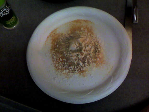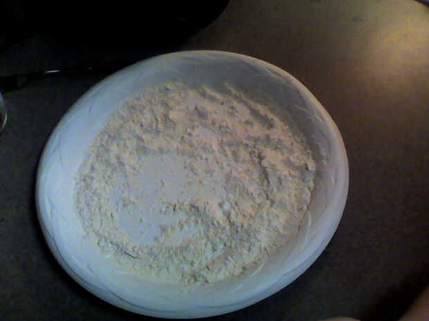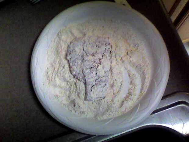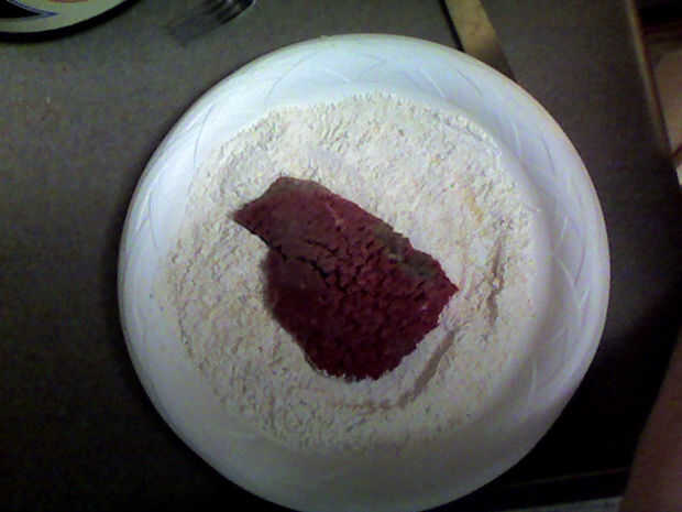 Harina y dragar los pedazos de carne como lo haría cualquier otra cosa. He utilizado sobre una taza de harina, un poquito de sal, mucha pimienta, algunos Lawry sal condimento y sal de ajo. Yo nunca realmente medir especias, así guesstimate Cuál crees que será adecuado para usted. Mantener la mezcla de harina extra, que usará más tarde.