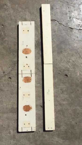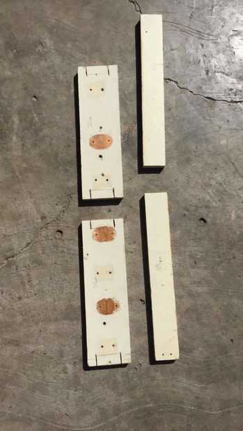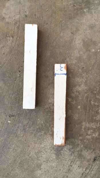 Cortar las 3 maderas (la de 70, 60 y de 40 cm largo) a la mitad quedanote con 2 tablas permiso de 35 cm, 2 de 30 cm y 2 de 20 cm. Aser un hollo de 3/8 pulgadas en ambas maderas de 30 cm en el centro de la cara 30 x 9 cm.