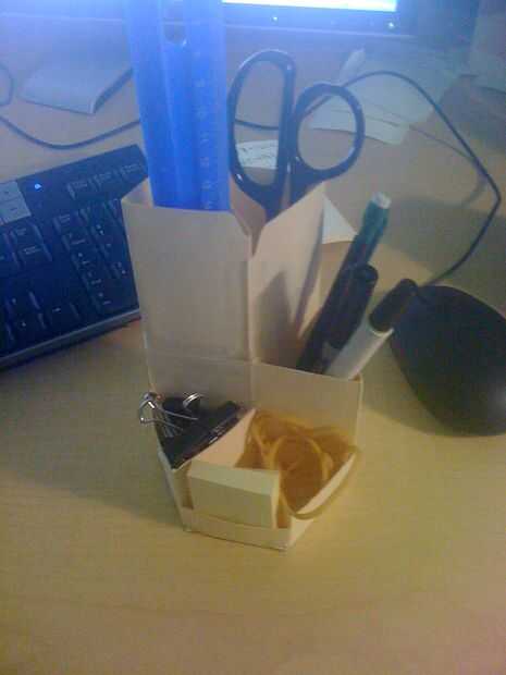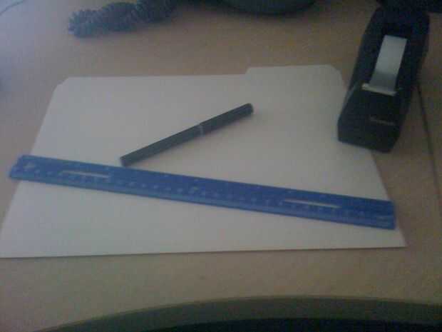 ¿Qué herramientas? Sólo un par de tijeras, un borde estrecho y una pluma. (Provechosamente, las herramientas muy usted va ser almacenamiento.)