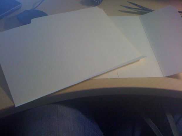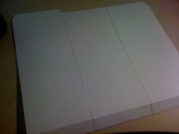 Con la carpeta directamente delante de usted, que es "más alto" hacia arriba, toma la carpeta de manila y encontrar su anchura. Mina fue 29,5 cm que marqué un hash a intervalos de 9,83 cm a través. Luego dibujar las líneas de guía para ayudar a más adelante. Cortar la carpeta a lo largo de la línea de sangría en la parte inferior de la carpeta.