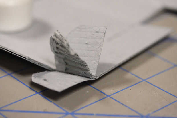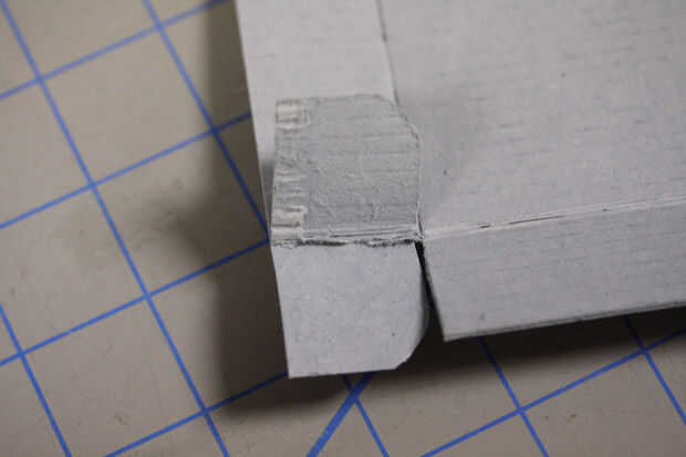 Dividir la tabla y quitar un poco de la base acanalada para hacer esquinas limpiador, más compactas.